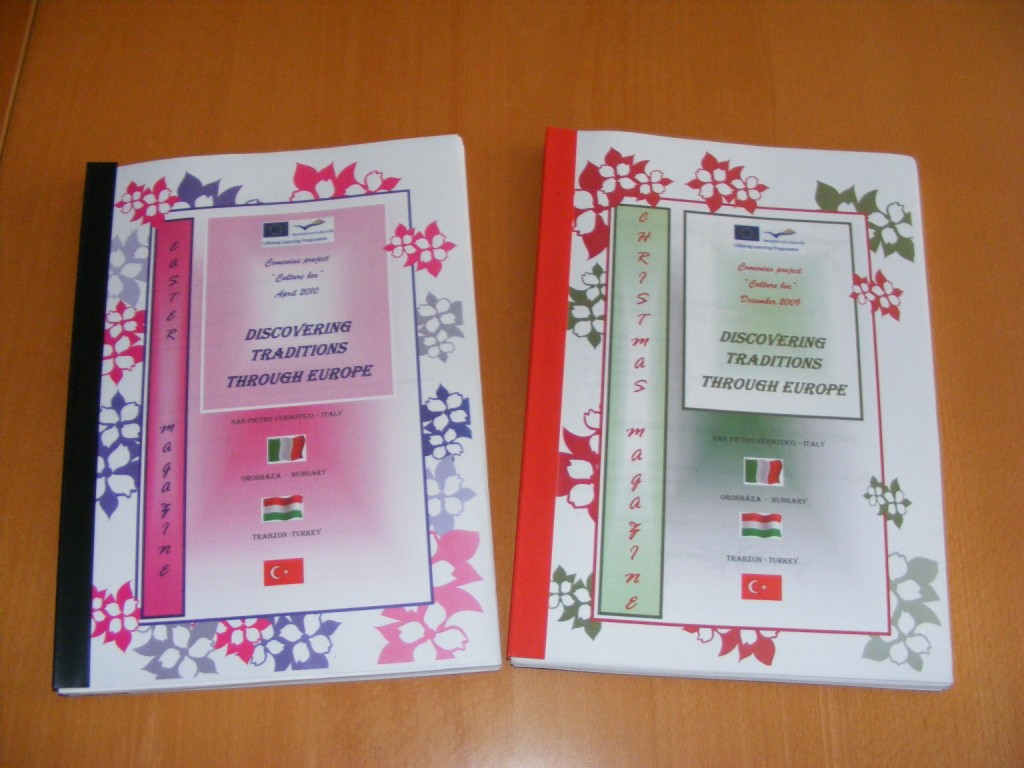Das erste bedeutende Produkt unseres Projekts wurde eine Zeitung, in der wir die an die Weihnachten knüpfenden Volkssitten und Bräuchen verarbeiteten. Die Aufgabe erledigten 14 Siebenklässler, sie illustrierten ihre Texte mit Farbbildern. Die fertig gemachten 13 Artikel schickten wir unseren italienischen Partnern, die sie mit ihrer Sammlung ergänzend als Buch ausgaben. Die Zeitung ist unter dem Menüpunkt „Projektprodukte“ zu besichtigen.